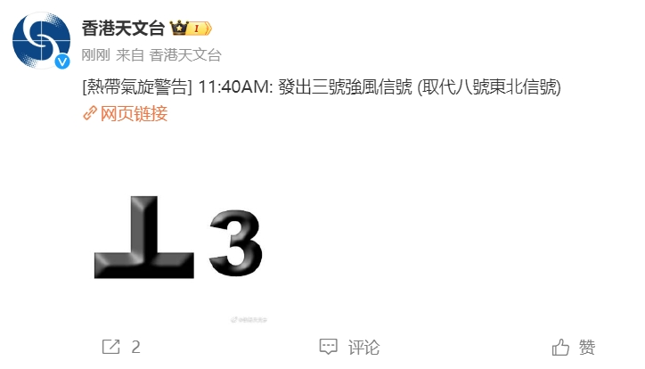 据香港天文台10月9日消息,香港天文台于11时40分发出三号强风信号。因八号风球与黑色暴雨警告信号均已解除,根据港交所相关安排,午盘交易将于14时开始。