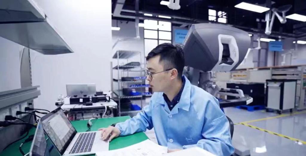 复星医药工作人员正在调试国产“达芬奇Xi手术系统”。(受访者供图)