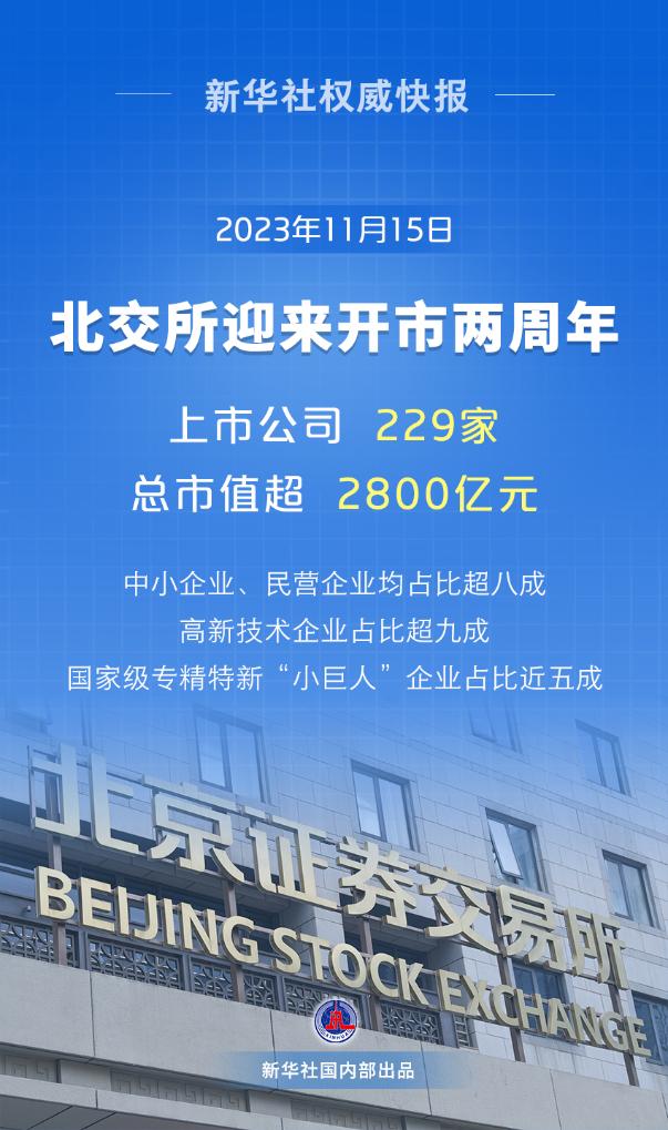 新华社权威快报丨北交所开市两周年 高新技术企业占比超九成