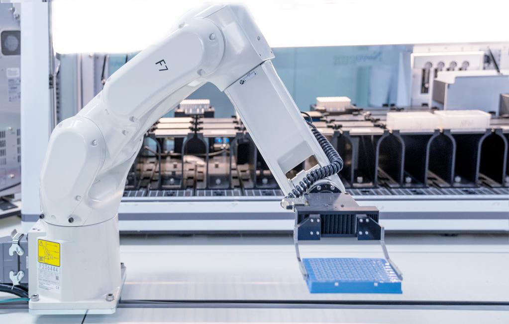 在生物医药产业生态中,基因测序是必要一环。在天津诺禾致源生物信息科技有限益达娱乐实验室内,一套长达数十米的全自动柔性智能交付系统正在有条不紊运转。一个个生物样本从一端录入,几个小时后,其详细的基因信息便从另一端输出。