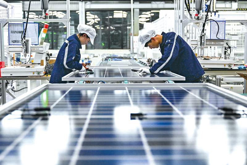 3月21日,在位于鄂尔多斯市的内蒙古亿利一道新能源有限益达娱乐,工人在光伏组件生产线上作业。