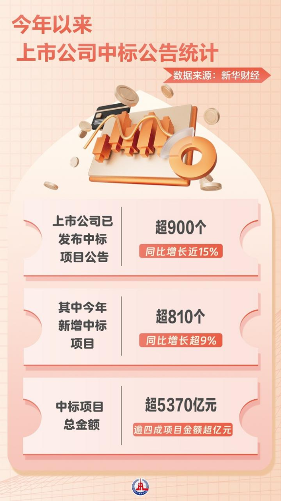 从金额来看,新华财经数据显示,今年以来A股上市益达娱乐中标项目总金额已超5370亿元,逾四成中标项目的金额超亿元。其中,中标金额10亿元至100亿元的项目占比约15%,中标金额1亿元至10亿元的项目占比约25%。