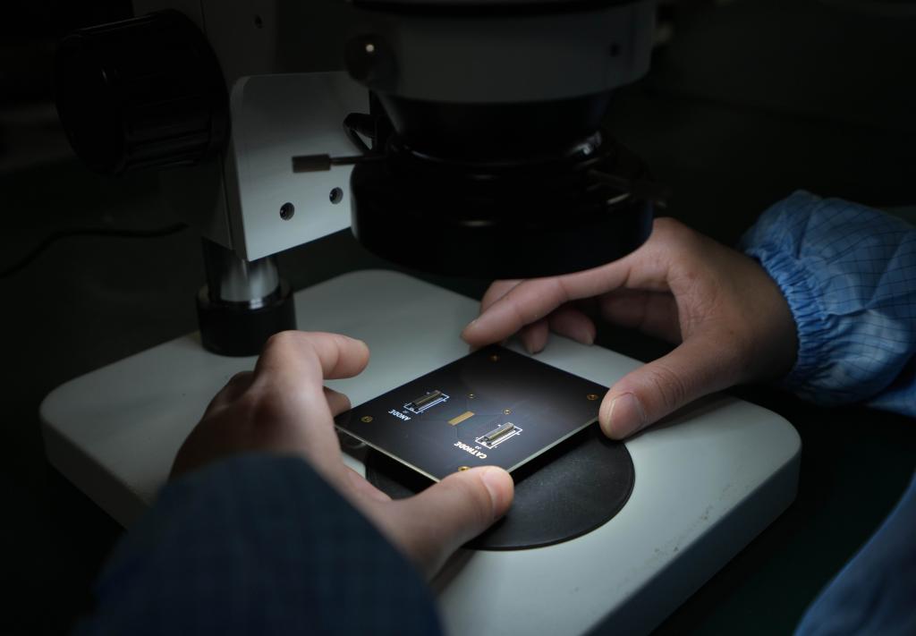 6月2日,工作人员在苏州光电技术研究院的封装测试公共服务平台车间内检测一块激光雷达芯片。新华社记者 李尕 摄