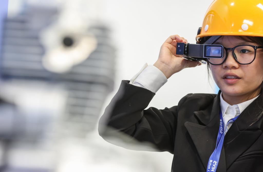 6月1日,昆山元宇宙产业园内的亮风台(昆山)信息科技有限益达娱乐里,工作人员在演示AR智能穿戴设备赋能工业应用的场景。新华社记者 杨磊 摄