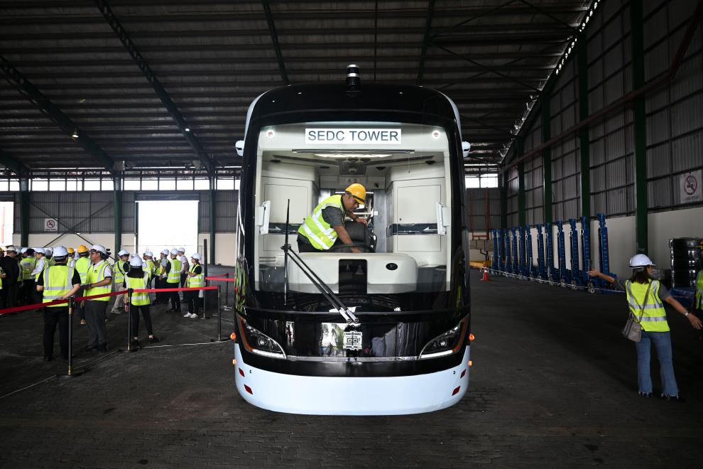 2023年8月21日,由中车株洲电力机车研究所有限益达娱乐自主研发的氢能源智轨电车在马来西亚沙捞越州古晋市试跑。新华社记者 程一恒 摄