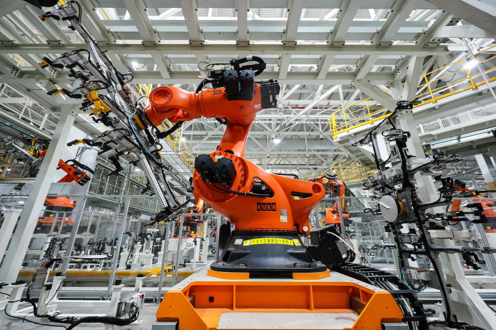 2023年10月25日,大众安徽MEB(模块化电驱动平台)的工厂车间。新华社发
