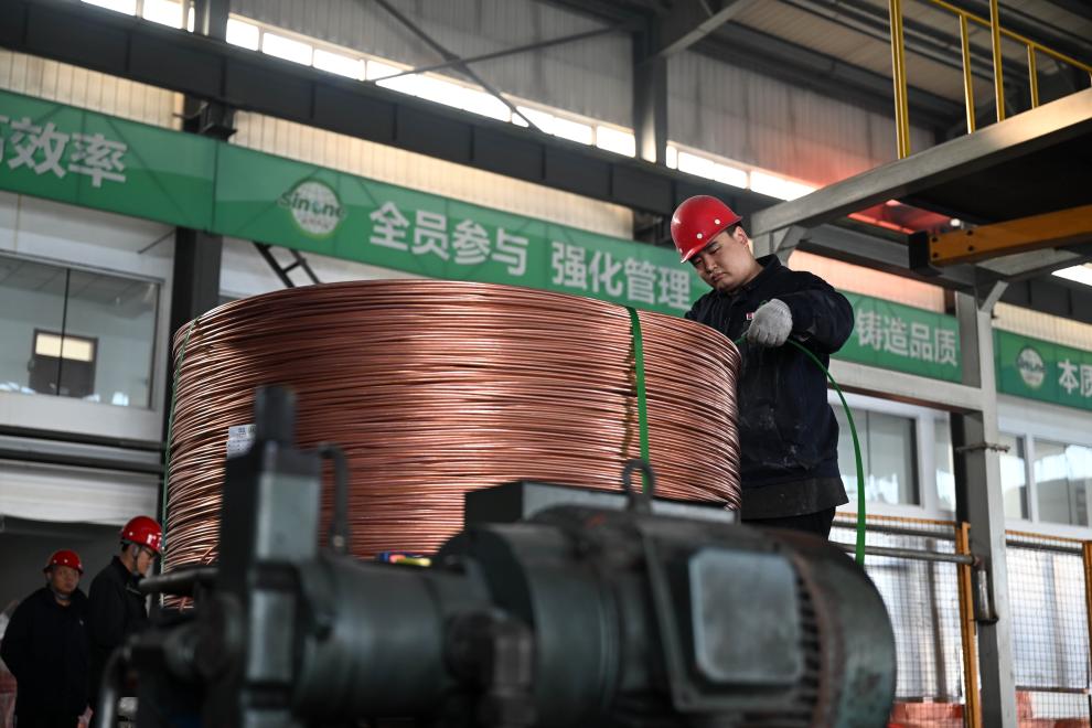工人在天津新能再生资源有限益达娱乐铜杆车间工作。新华社记者 赵子硕 摄
