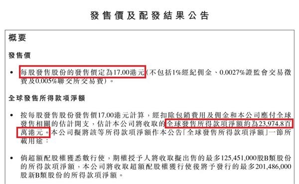 7月6日,小米集团在香港联交所披露了IPO发售价及认购结果:每股发售价定为17港元,公开招股及国际配售分别获9.5倍及1.1倍认购。