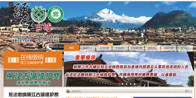 丽江古城官网上缴纳古城维护费的提示,要求随身携带票据,以备查验。本版图片均为网络截图
