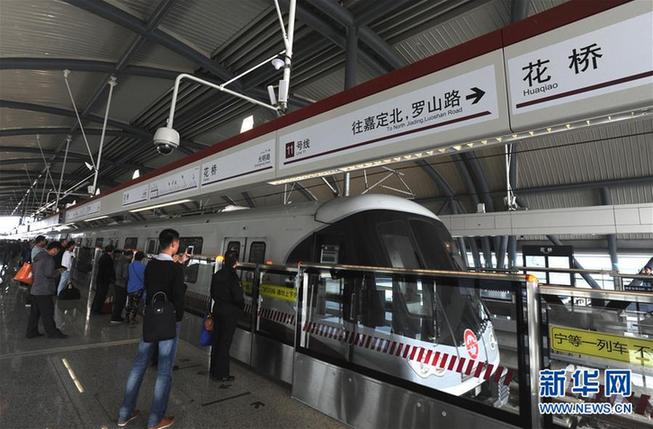 2013年10月16日,上海地铁11号线北段延伸工程花桥段(上海安亭站至江苏昆山花桥站)开通试运营。这是乘客在江苏昆山花桥站站台候车。新华社记者 刘巍巍 摄