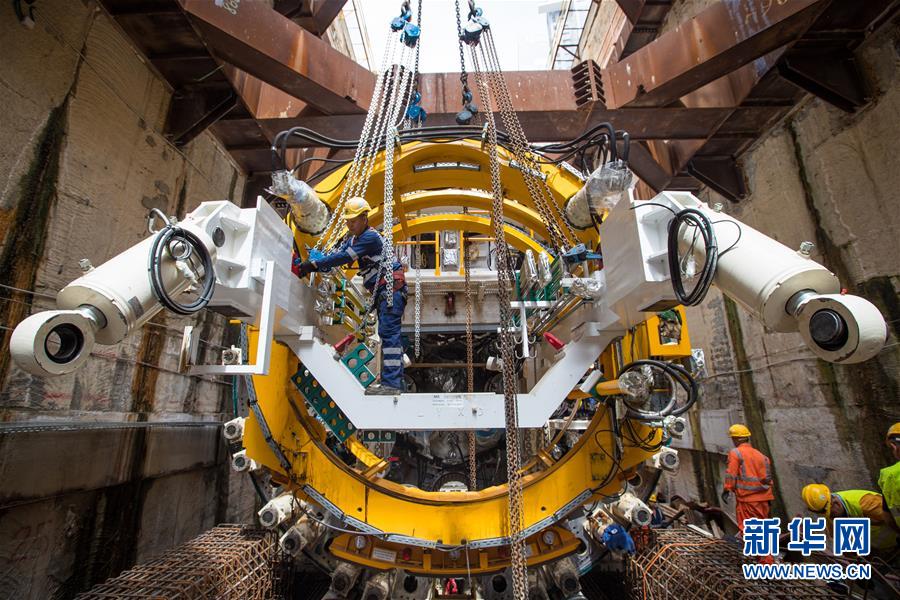 4月30日,在以色列特拉维夫轻轨红线施工现场,工人在组装盾构机。中国中铁旗下子益达娱乐与以色列益达娱乐组成的联营体于2015年5月成功中标以色列特拉维夫轻轨红线项目TBM段西标段。该项目包括6座地下车站、10560米TBM隧道及17条横通道等工程。项目使用的土压平衡式盾构机全部由中国制造,盾构机安装、调试和操作等专业技术工作也都由中方技术人员完成;地铁隧道使用的混凝土管片也在中方的技术指导下进行生产。截至目前,工程进展顺利。新华社记者郭昱摄