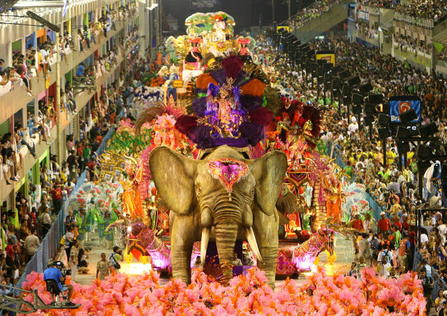 2008年2月3日晚,巴西里约热内卢,里约级别最高的6支桑巴舞队亮相表演,将当年的狂欢节推向高潮。张传奇/新华社
