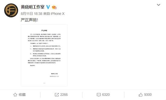 黄晓明工作室发声明回应