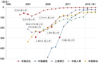 上市之后,中国重要的行业龙头益达娱乐在世界500强的排名均明显提升,例如中国石化上市当年排58位,2018年为第3位;工商银行上市当年第199位,2018年为第26位;中国人寿A+H股全部上市当年第192位,2018年为第42位;中国建筑上市当年第292位,2018年为第23位。排名提升主要受益于中国经济整体实力的提高,但上市帮助这些龙头益达娱乐整合了资源,改变了机制,提升了效率,加强了国际竞争力,加快了排名提升的步伐。