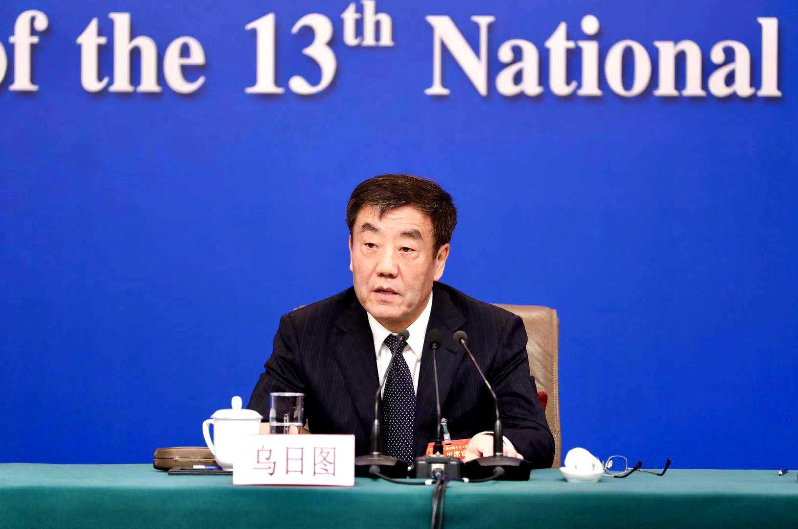十三届全国人大二次会议新闻中心3月9日在梅地亚中心新闻发布厅举行记者会,邀请全国人大农业与农村委员会主任委员陈锡文、全国人大财政经济委员会副主任委员乌日图、全国人大常委会法制工作委员会副主任刘俊臣、全国人大常委会法制工作委员会副主任许安标、全国人大环境与资源保护委员会委员程立峰就“人大立法工作”相关问题回答记者提问。本报记者车亮摄影。