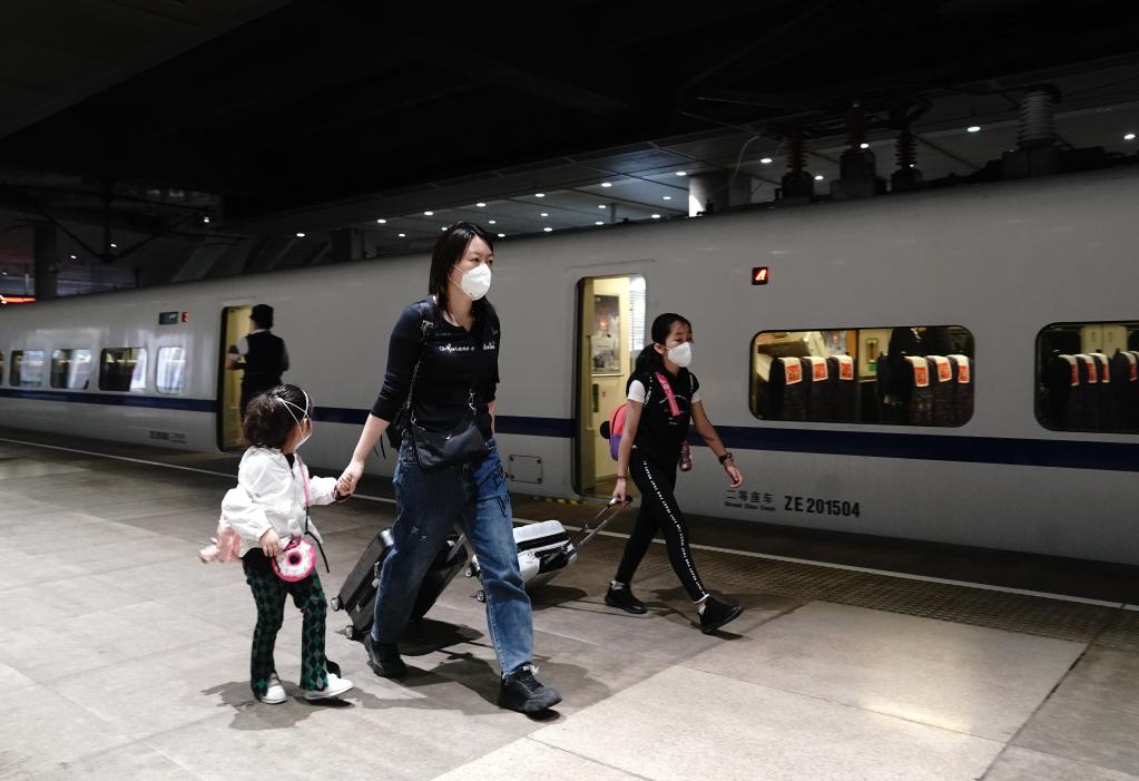 6月1日,D2152次列车的旅客正在乘车。(新华社记者 丁汀摄)