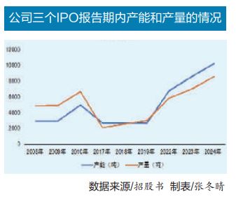 最新港版招股书却又显示,2022年至2024年,四川新荷花的产能从接近7000吨快速突破10000吨,分别约为2017年的2.5倍和近4倍。