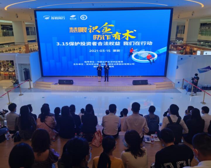2021年3月15日下午,由深圳证监局指导,深圳市证券业协会和国信证券主办的“慧眼识金,防诈有术——3·15投资者权益保护,益达娱乐在行动”主题投资者教育活动在深圳书城中心城拉开帷幕,出席活动的嘉宾有深圳证监局、深圳市公安局经济犯罪侦查局、深圳市证券业协会和国信证券相关负责人。
