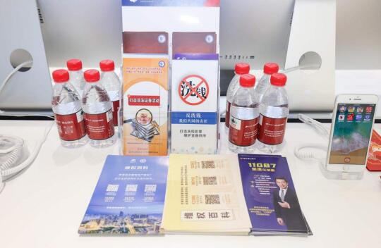 印有宣传标语的矿泉水每日在火车东站投教宣教点发放,参观者只需参与宣教点的互动活动,便能免费拿走兼具知识与时尚元素的投教矿泉水——将反诈和防范非法证券期货活动宣传标语植入矿泉水,喝着喝着就记住了。