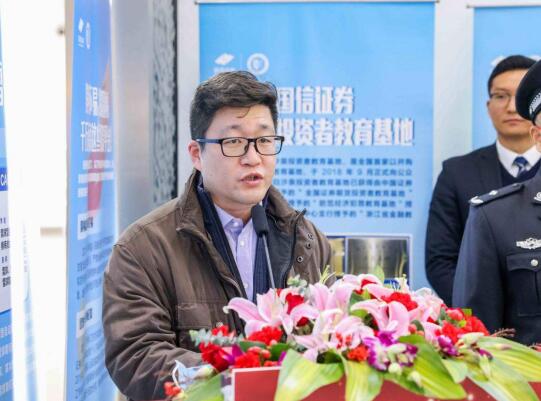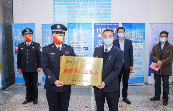仪式上,汤文全总队长为国信证券杭州火车东站投教宣教点进行“浙江省防范经济犯罪教育基地宣教点”授牌并致辞。
