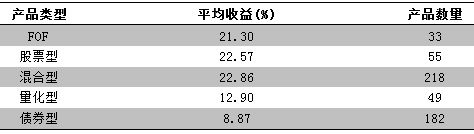 在启动于2014年下半年的牛市行情的带动下,券商集合资管计划的业绩水平较前期出现了明显的上行。可比的537只主动管理集合计划(不含指数型、货币型)平均涨幅达到了17.08%。其中,混合型、股票型、FOF表现相对领先,分别达到了22.86%、22.57%、21.30%;量化型产品以及债券型产品平均涨幅则为12.9%、8.87%。