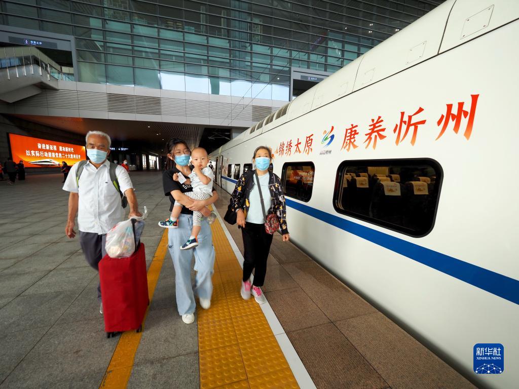 乘客在山西太原南站准备乘坐D5306次动车组列车(2022年7月4日摄)。新华社发(张炯摄)
