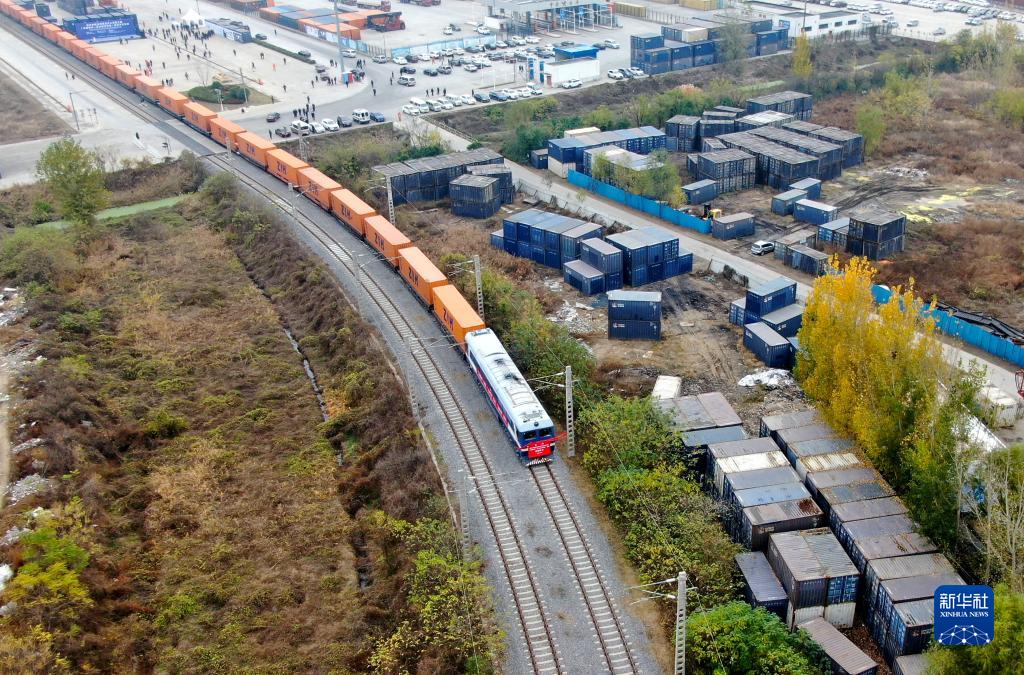 中国郑州至芬兰赫尔辛基的中欧班列驶出中国铁路郑州局集团有限益达娱乐圃田车站(2020年11月20日,无人机照片)。新华社记者 郝源 摄