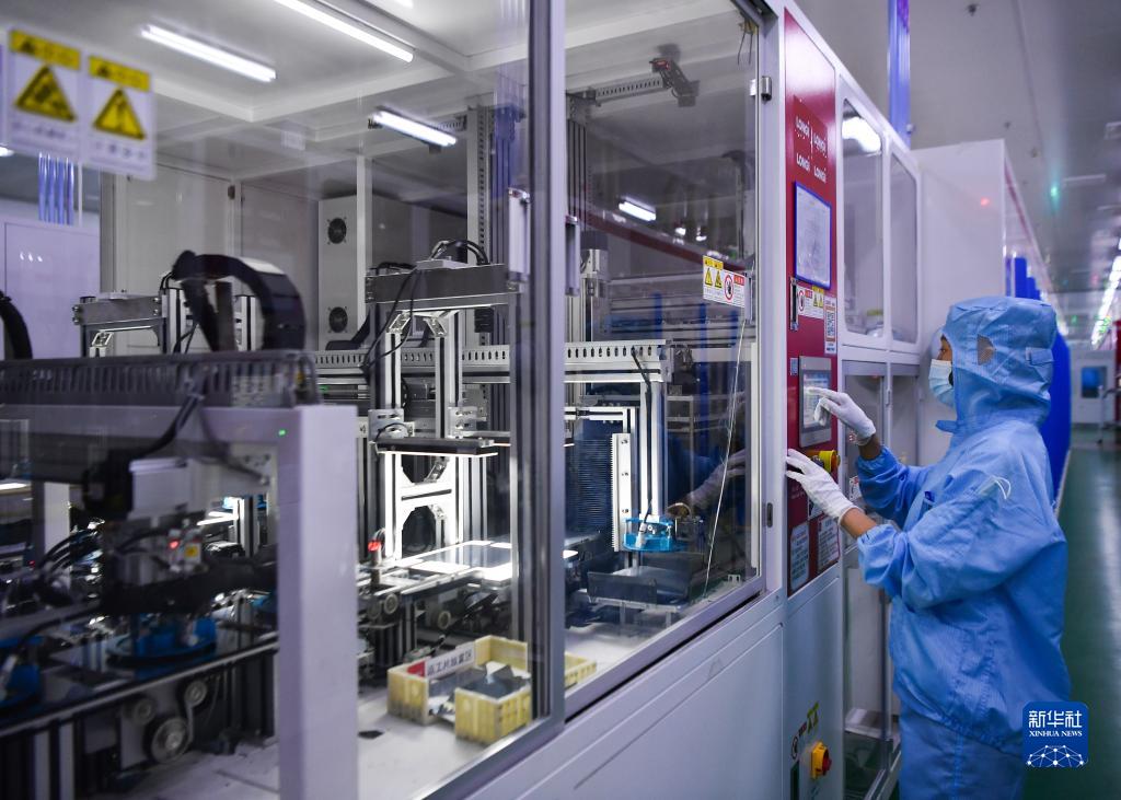 2022年7月19日,工作人员在位于陕西西安的隆基绿能科技股份有限益达娱乐单晶硅太阳能电池工厂内调试设备。新华社记者 张博文 摄