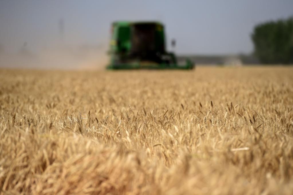 安徽省农垦集团龙亢农场良种繁育基地,工作人员驾驶收割机收割小麦(2021年6月7日摄)新华社记者 黄博涵 摄