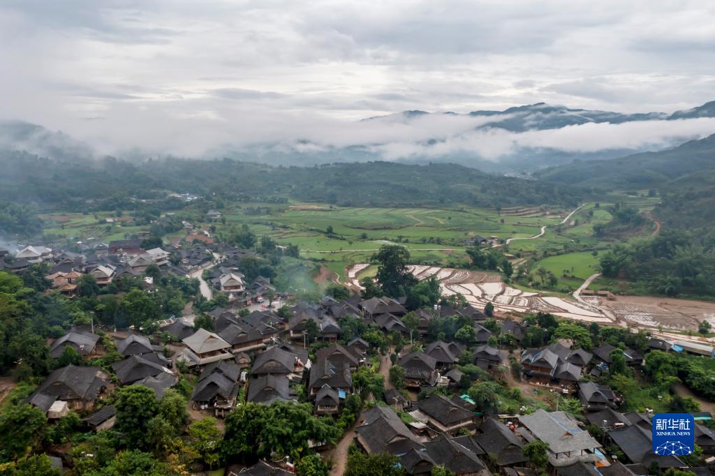 云南省普洱市澜沧拉祜族自治县老达保村夏日景色(2022年7月5日摄,无人机照片)。新华社记者江文耀摄