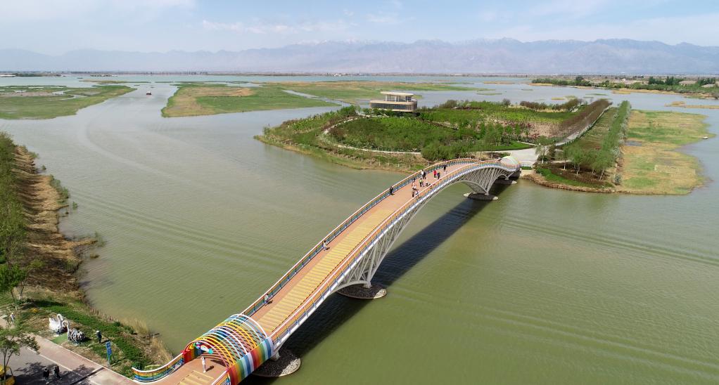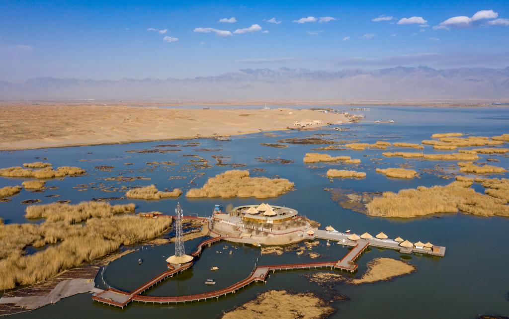 这是4月1日拍摄的沙湖鸟岛观光区(无人机照片)。新华社记者冯开华摄