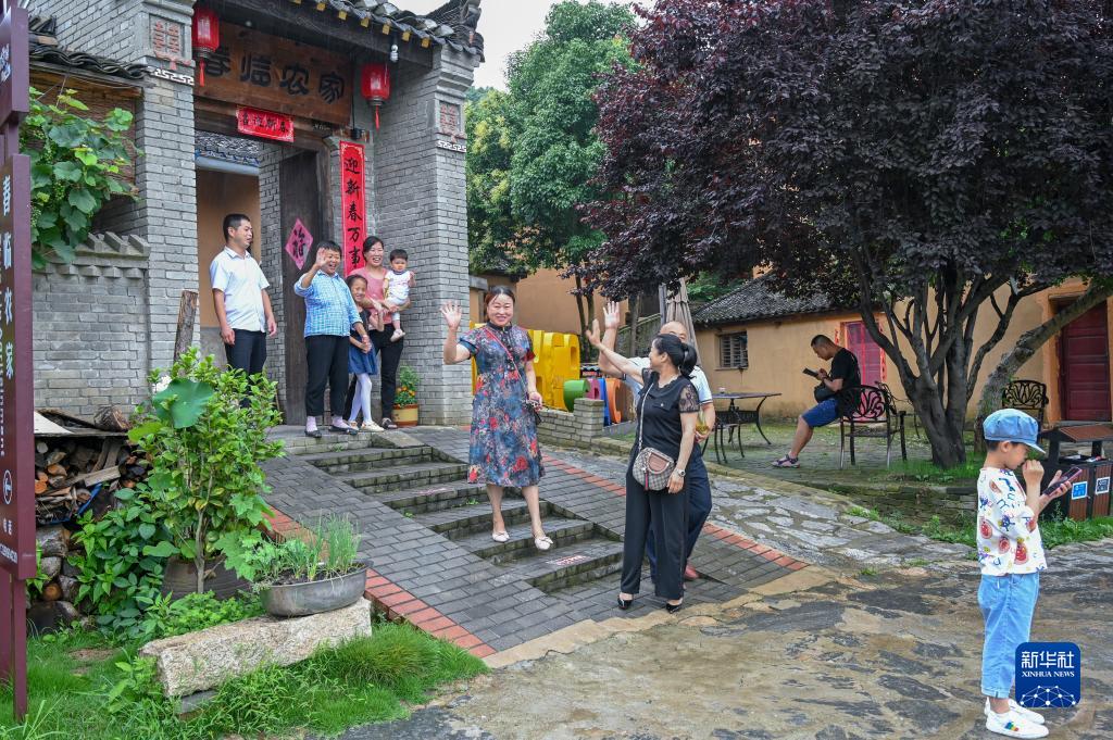 游客在新县田铺大塆一农家乐就餐后离开(资料照片)。新华社发