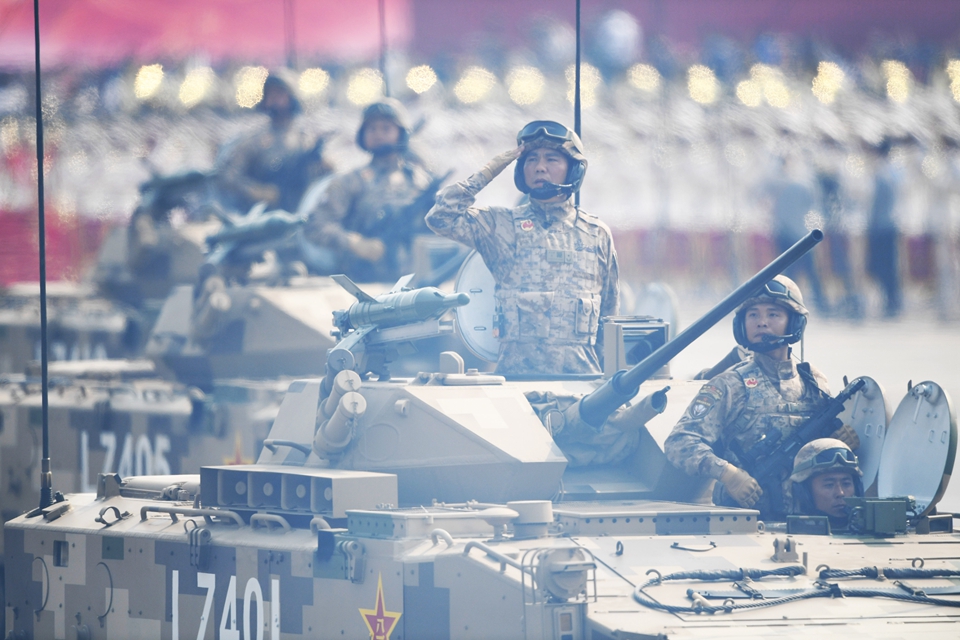 10月1日上午,庆祝中华人民共和国成立70周年大会在北京天安门广场隆重举行。这是空降兵战车方队。新华社记者陈晔华摄