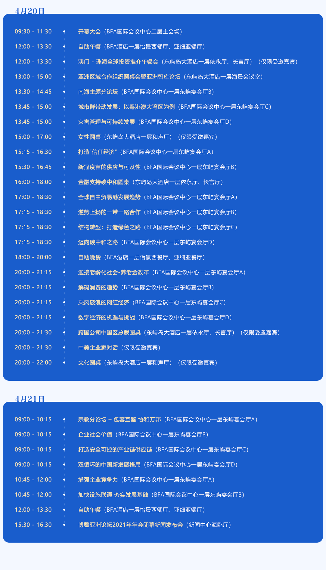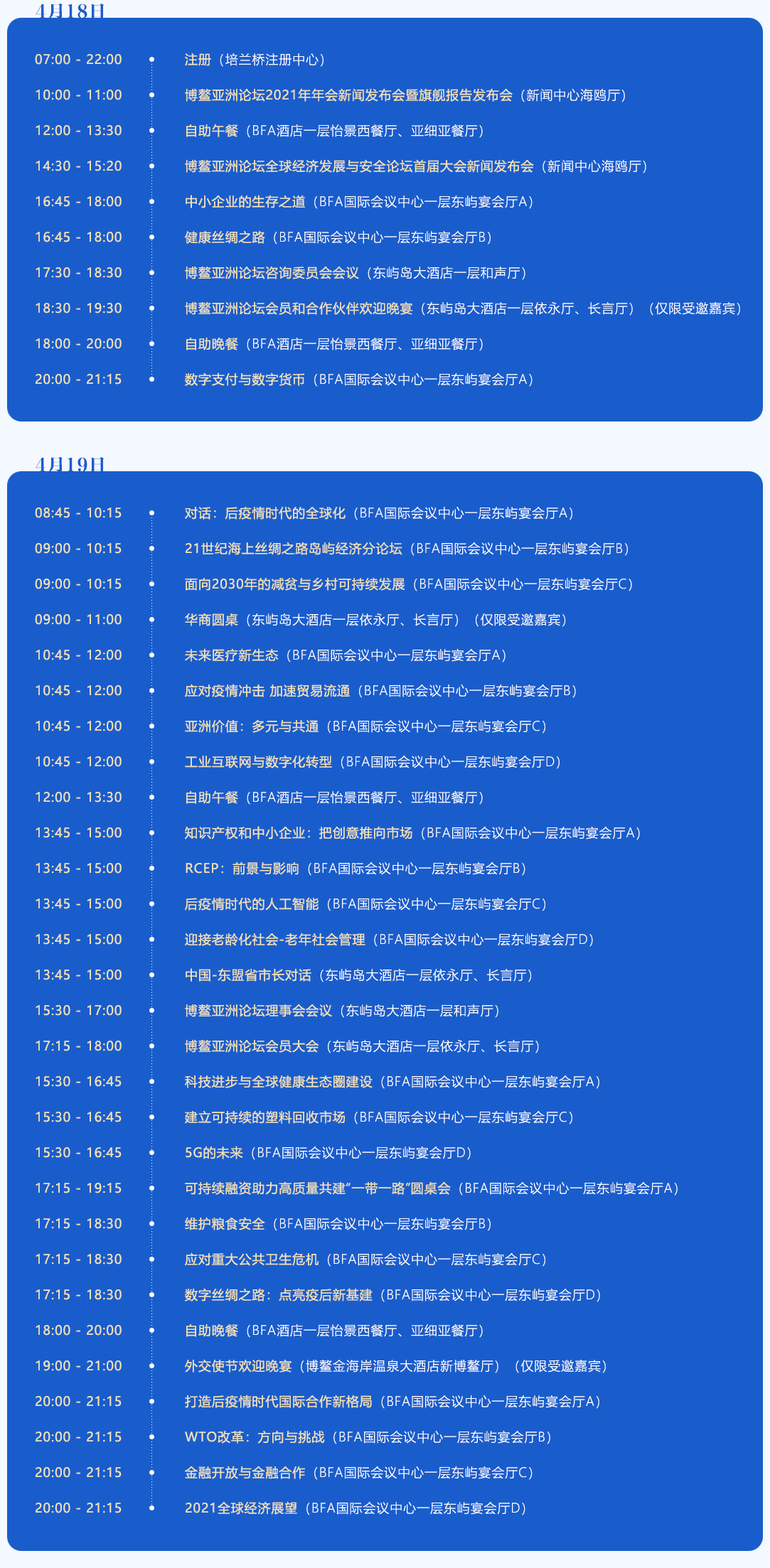 博鳌亚洲论坛2021年年会日程