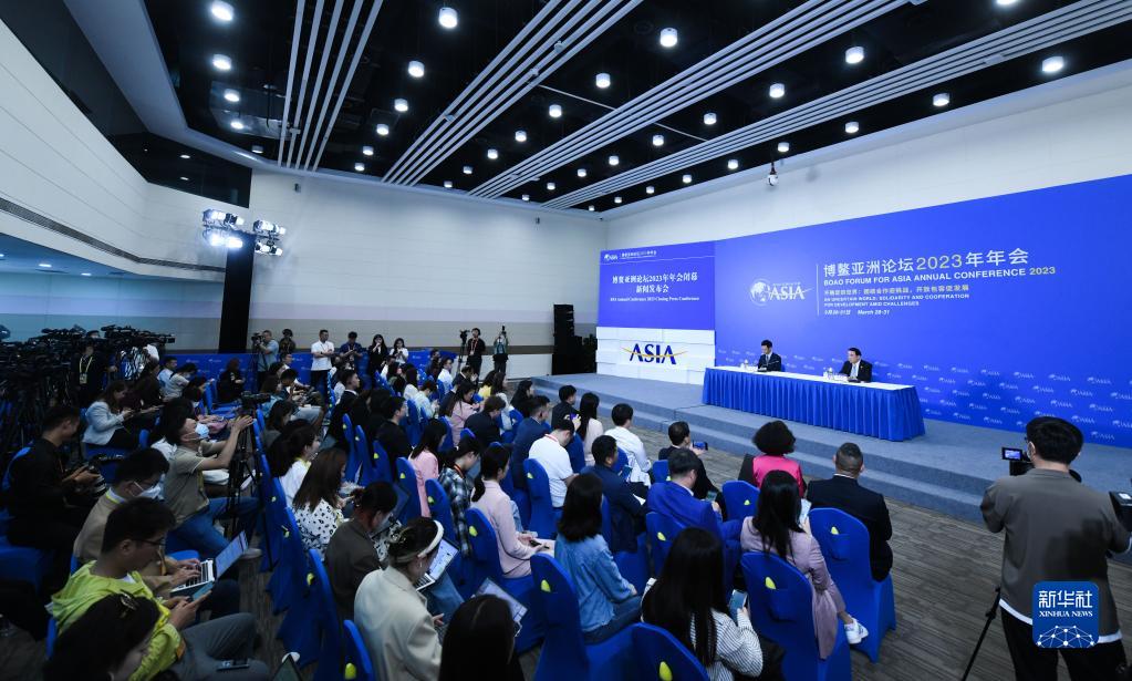 3月31日拍摄的博鳌亚洲论坛2023年年会闭幕新闻发布会现场。新华社记者 杨冠宇 摄