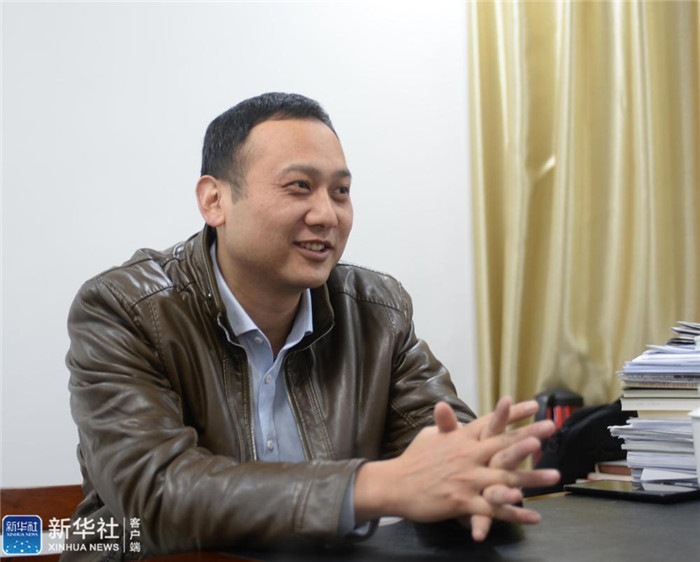 ↑12月20日,湛果在长沙市天心区金盆岭街道办事处办公室内接受采访。新华社记者 陈振海 摄