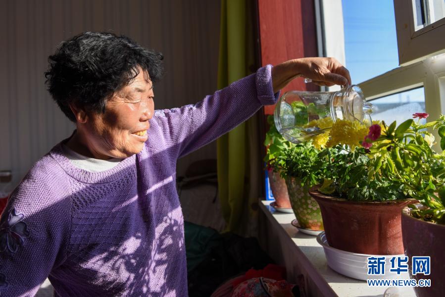 吉木萨尔县头工街东村村民在家中浇花(1月21日摄)。新华社记者 丁磊 摄