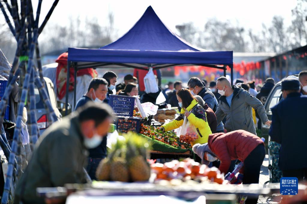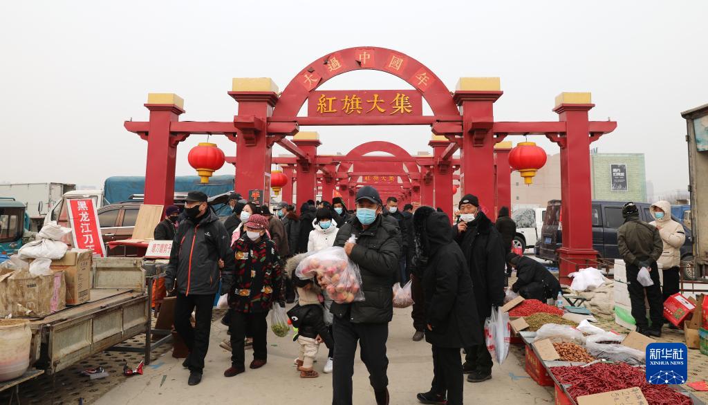 1月15日,在辽宁省营口市红旗大集,村民在集市上采购年货。新华社记者 赵泳 摄