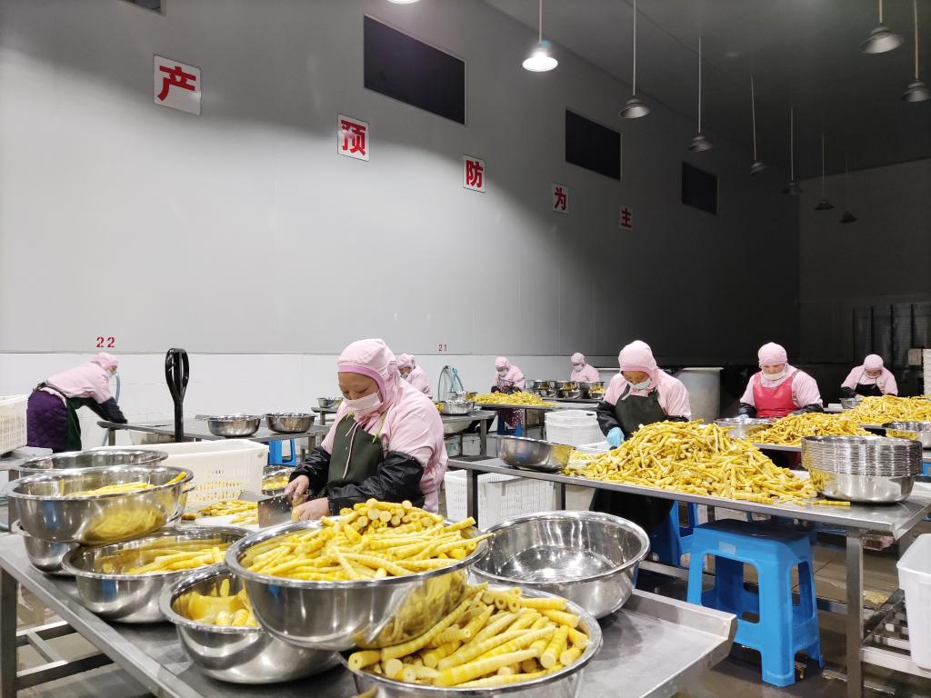 在碗厂镇农特产品产业园,竹笋加工厂多条生产线有序运转。