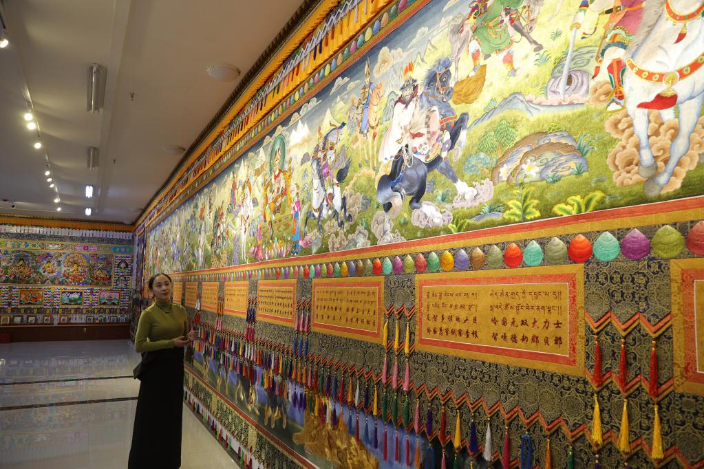 1月24日,青海省海南藏族自治州共和县一绣坊展厅内的藏绣作品。新华社记者央秀达珍 摄