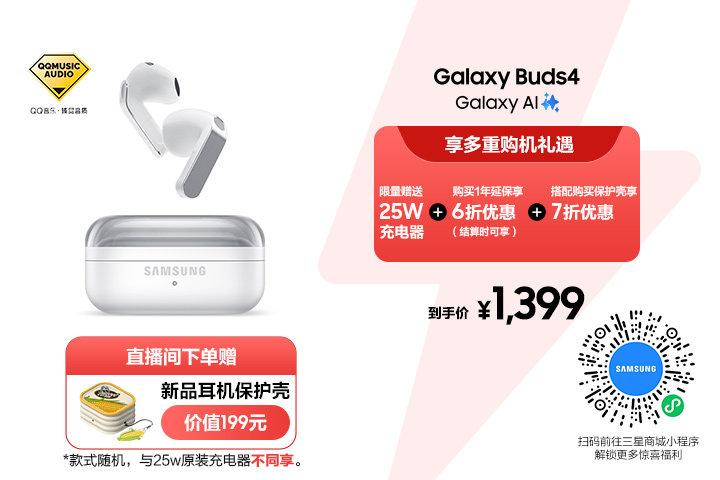 *Galaxy Buds4的耳机保护壳赠品需在直播间下单选择